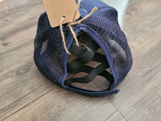 Baseball Vibes Crisscross ponytail adjustable Navy hat.
