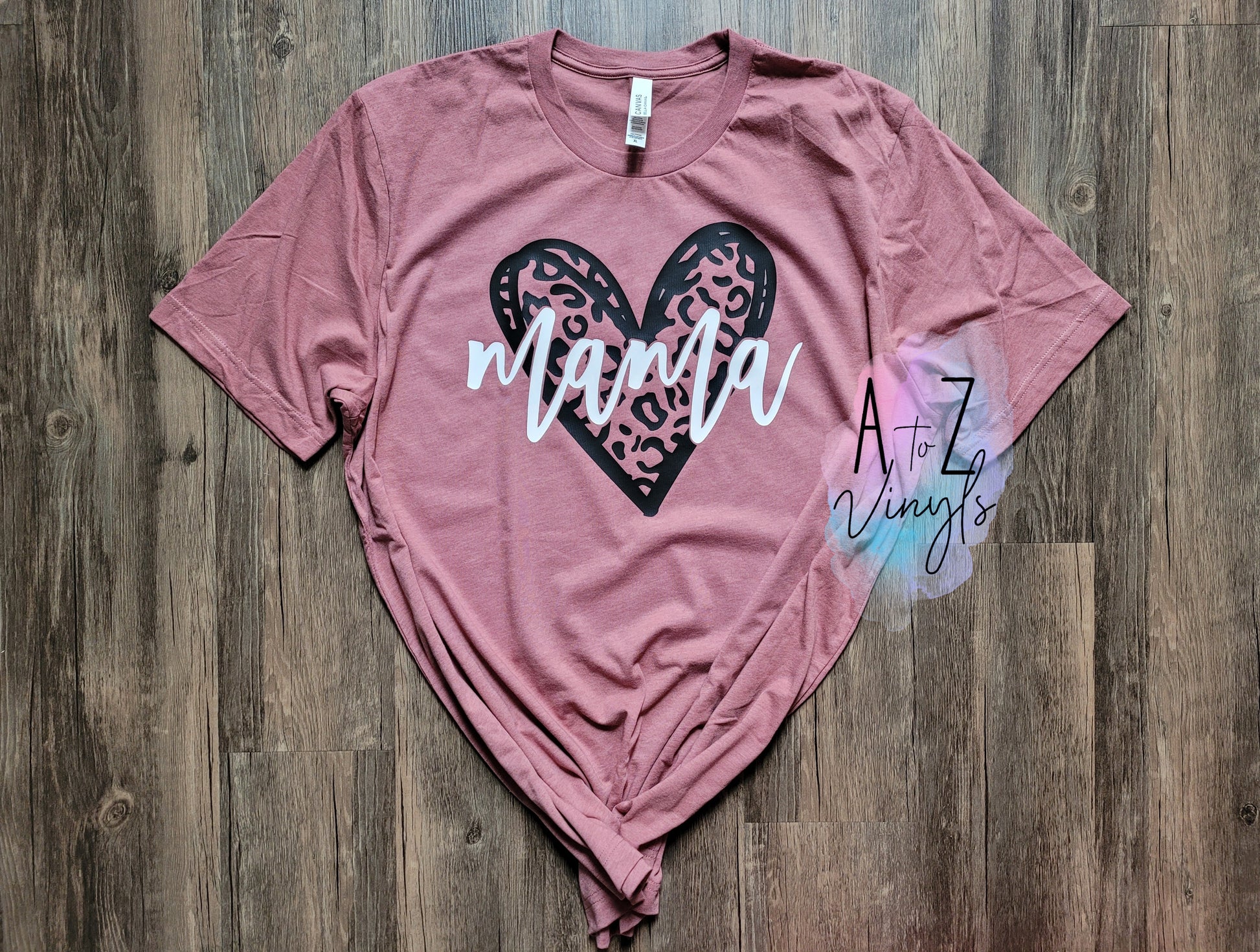 Adult unisex Bella canvas Mauve tee- Mama in white, with a leopard heart in black.