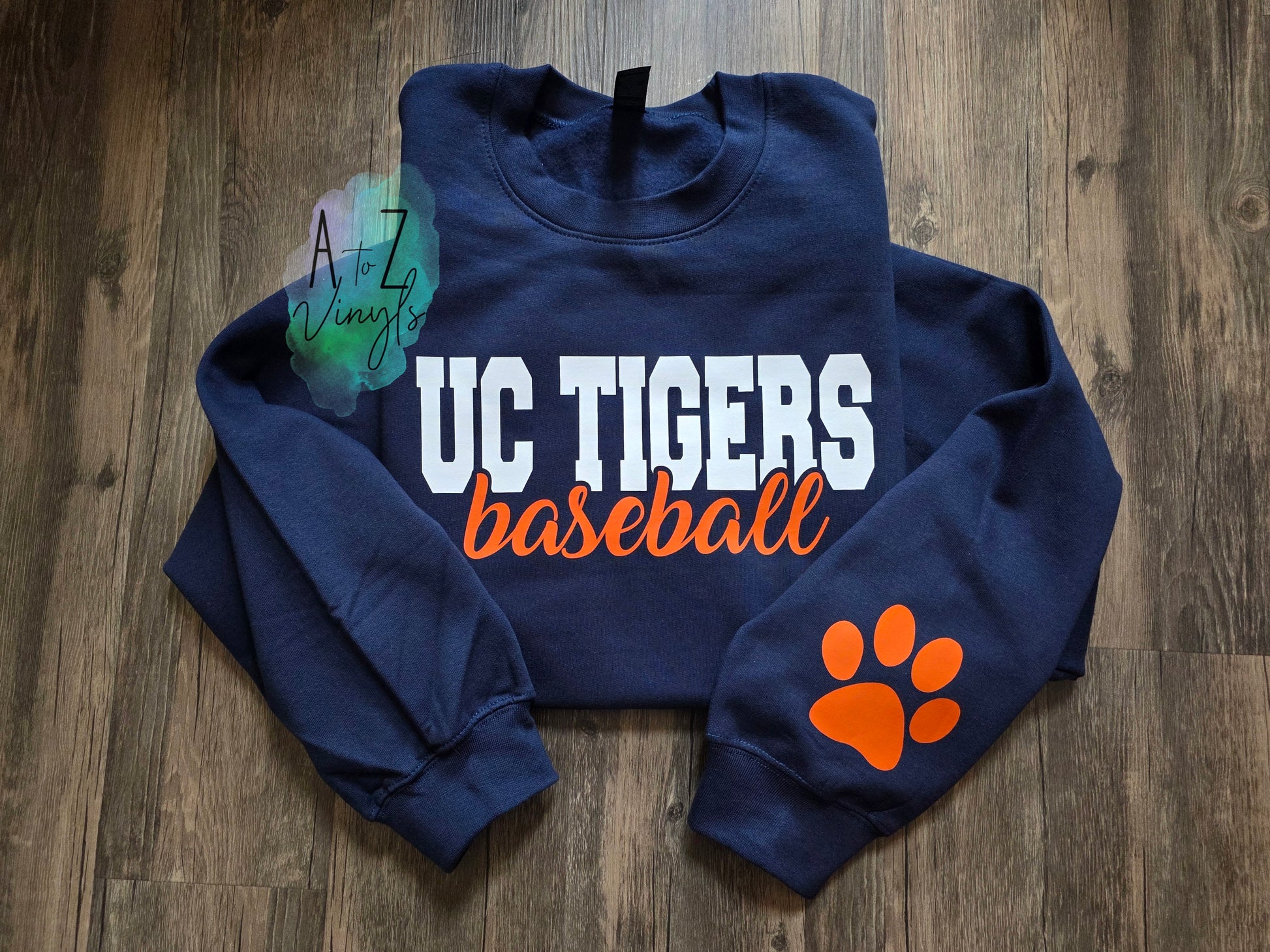 Adult Sweatshirt- UC Tigers baseball with paw on sleeve