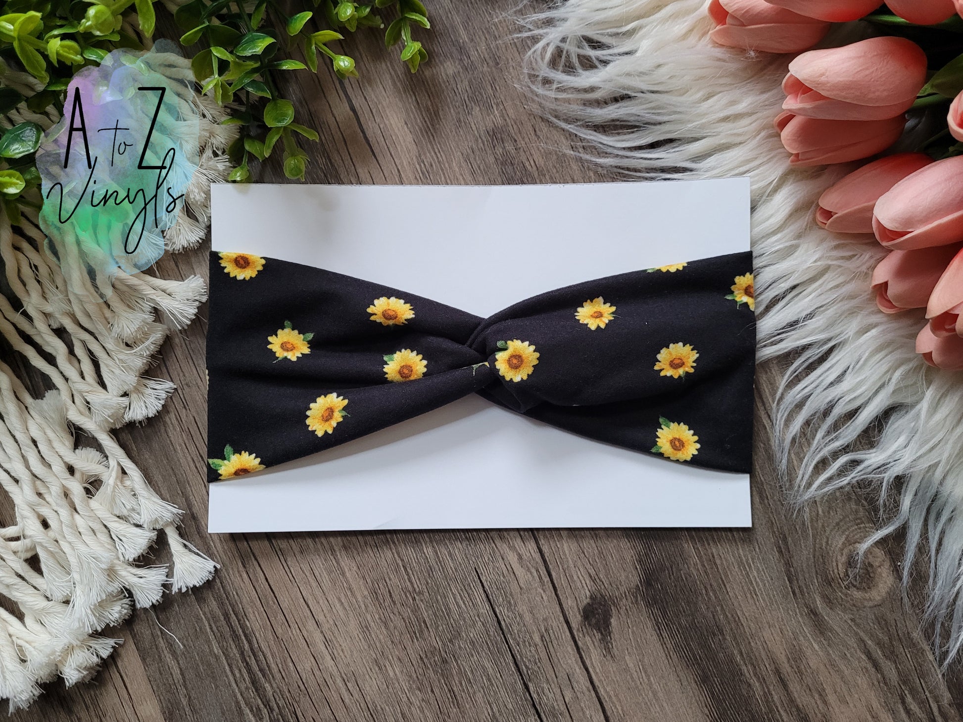 Adult Topknot Headband- Black with small floral