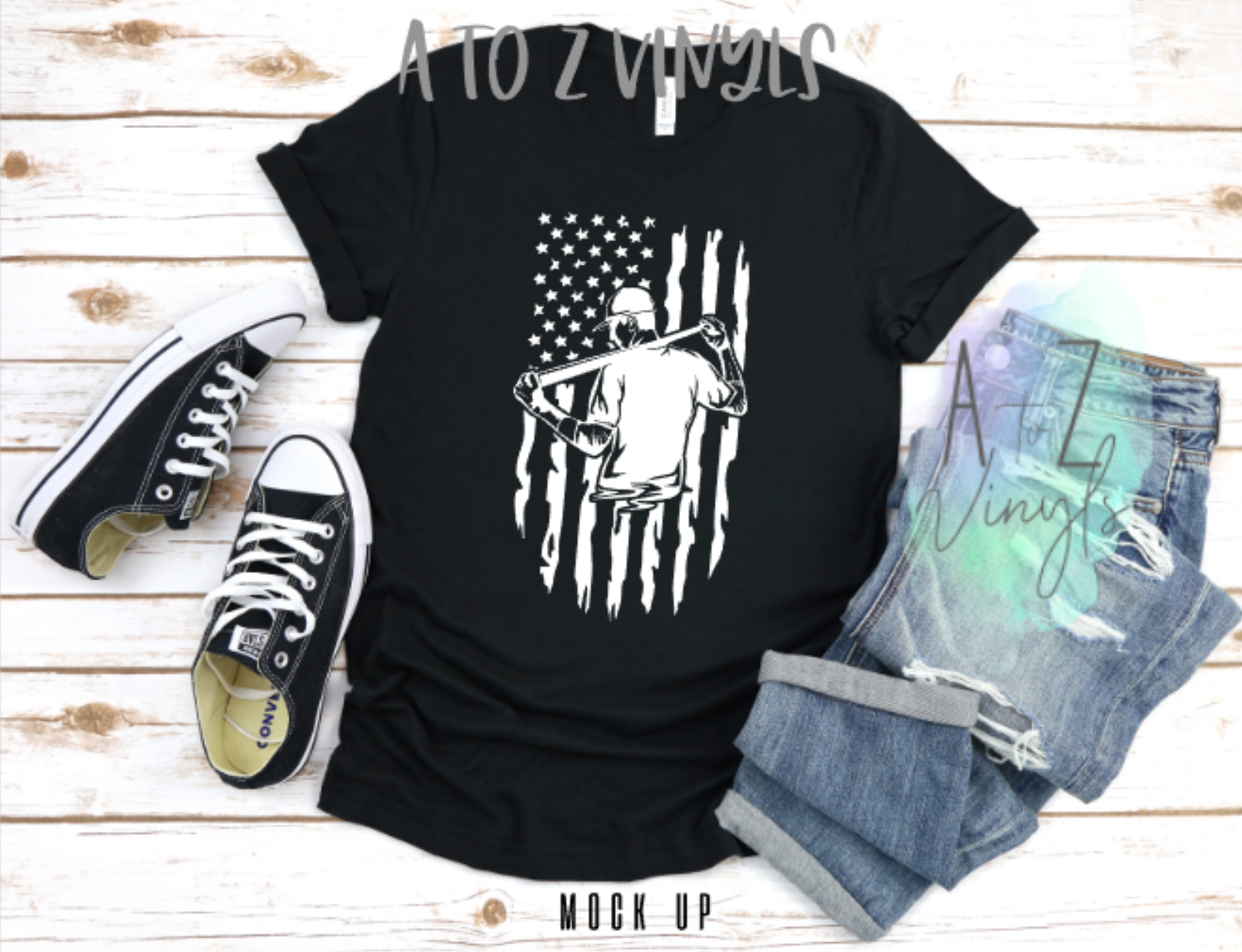 Adult Unisex Bella Canvas black tee- Flag Baseball player design 2