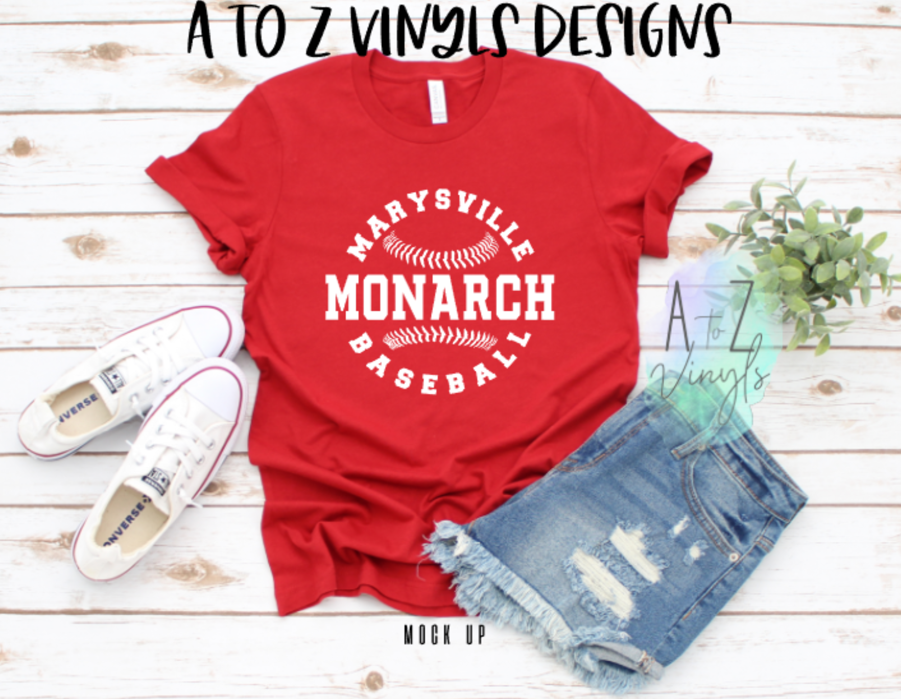 Adult Unisex Bella Canvas red tee- Marysville Monarch Baseball