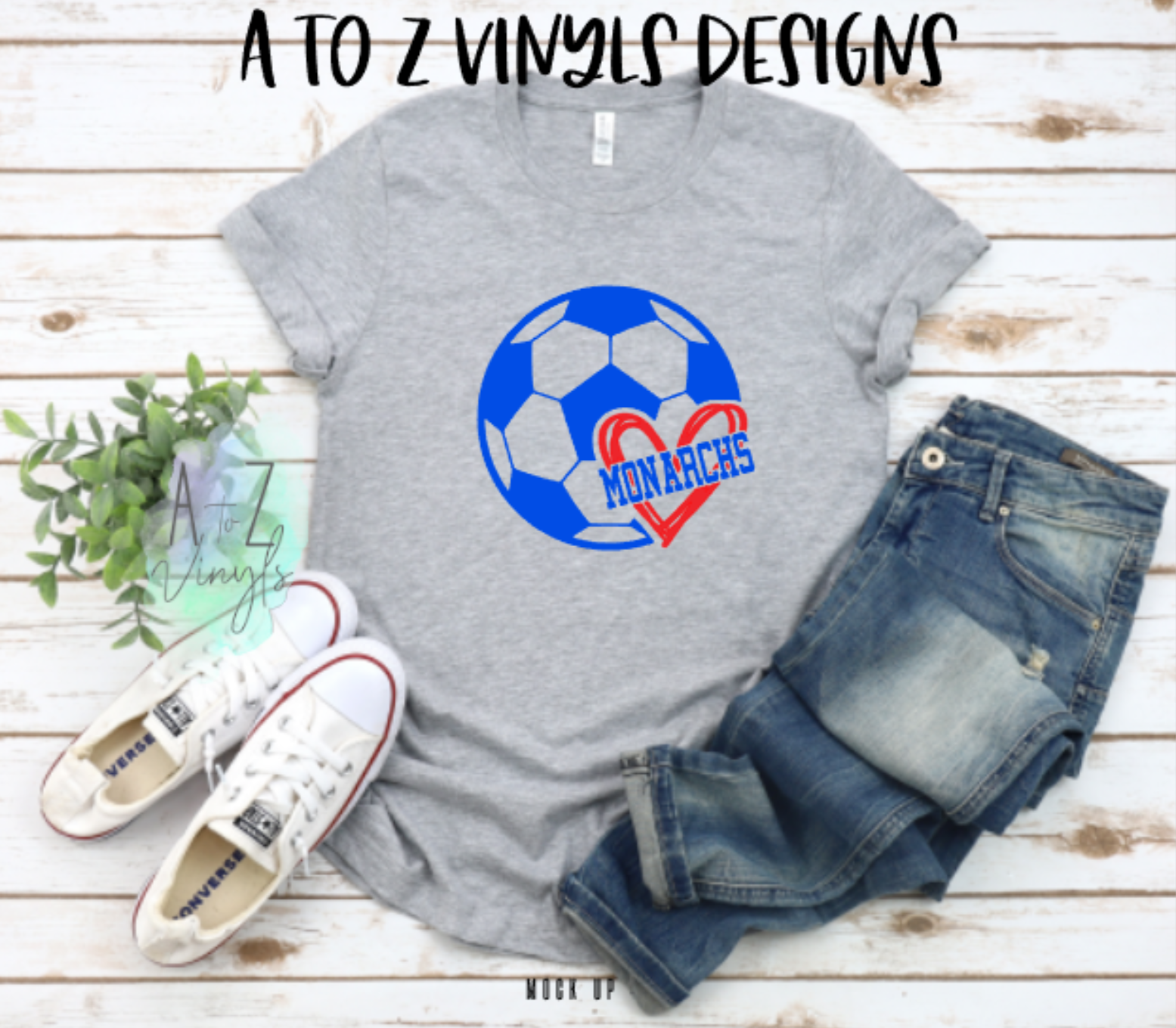 Adult Unisex Bella Canvas Heather Light Grey tee- Soccer ball Monarchs heart Design