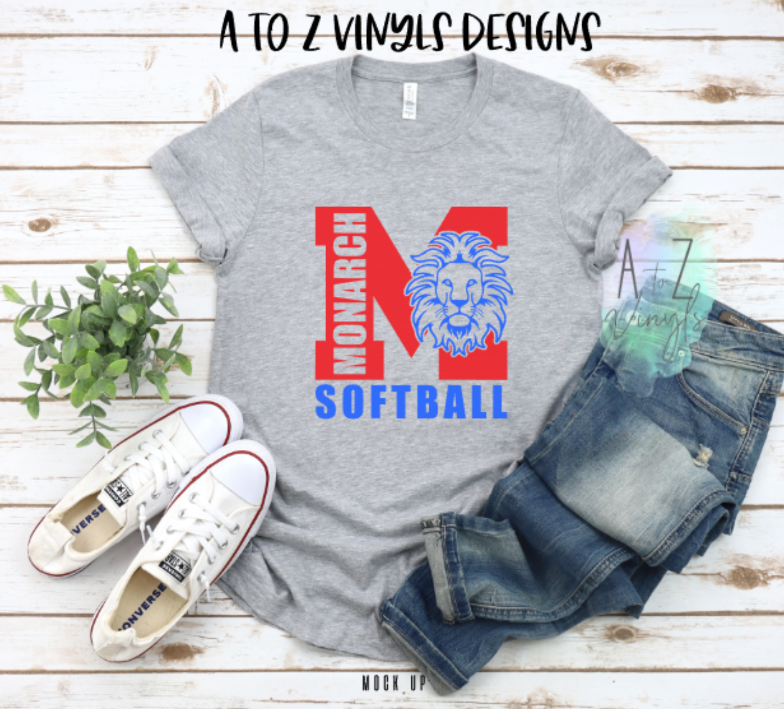 Adult Unisex Bella Canvas light grey tee- Monarch softball big M lion