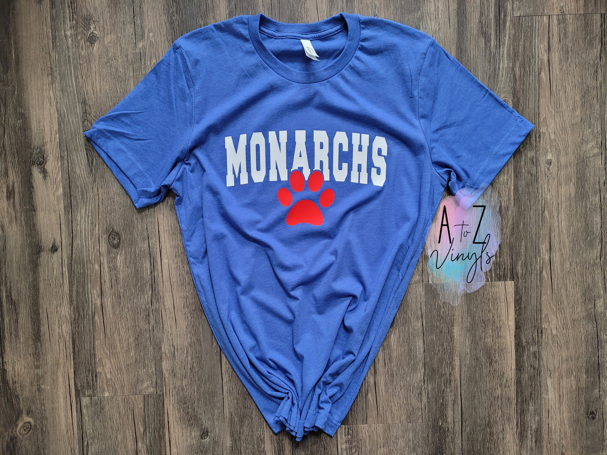 Adult Unisex Bella Canvas heather royal blue tee- Monarchs paw Design