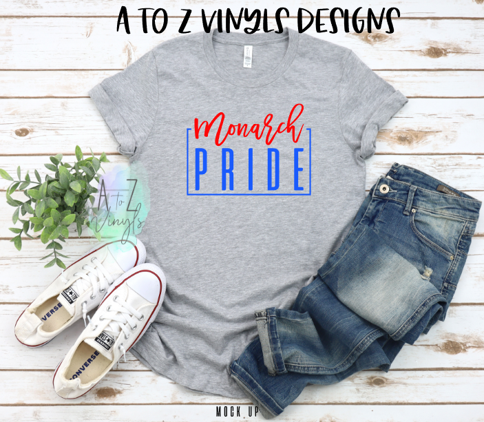 Adult Unisex light Heather Grey- with Monarch Pride, in red and royal