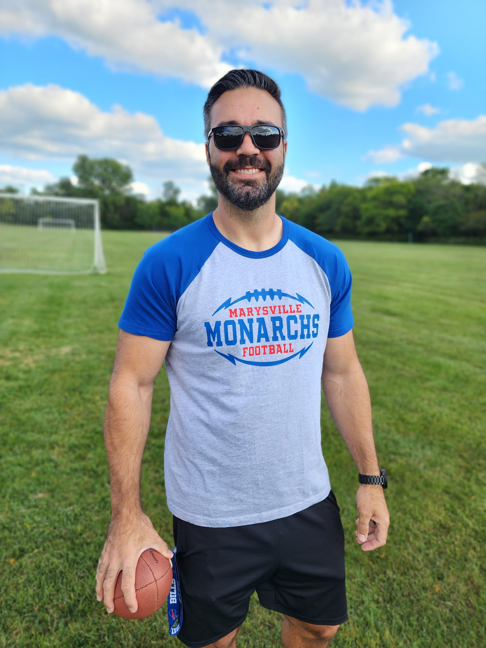 Adult Unisex raglan short sleeve. Marysville Monarchs Football