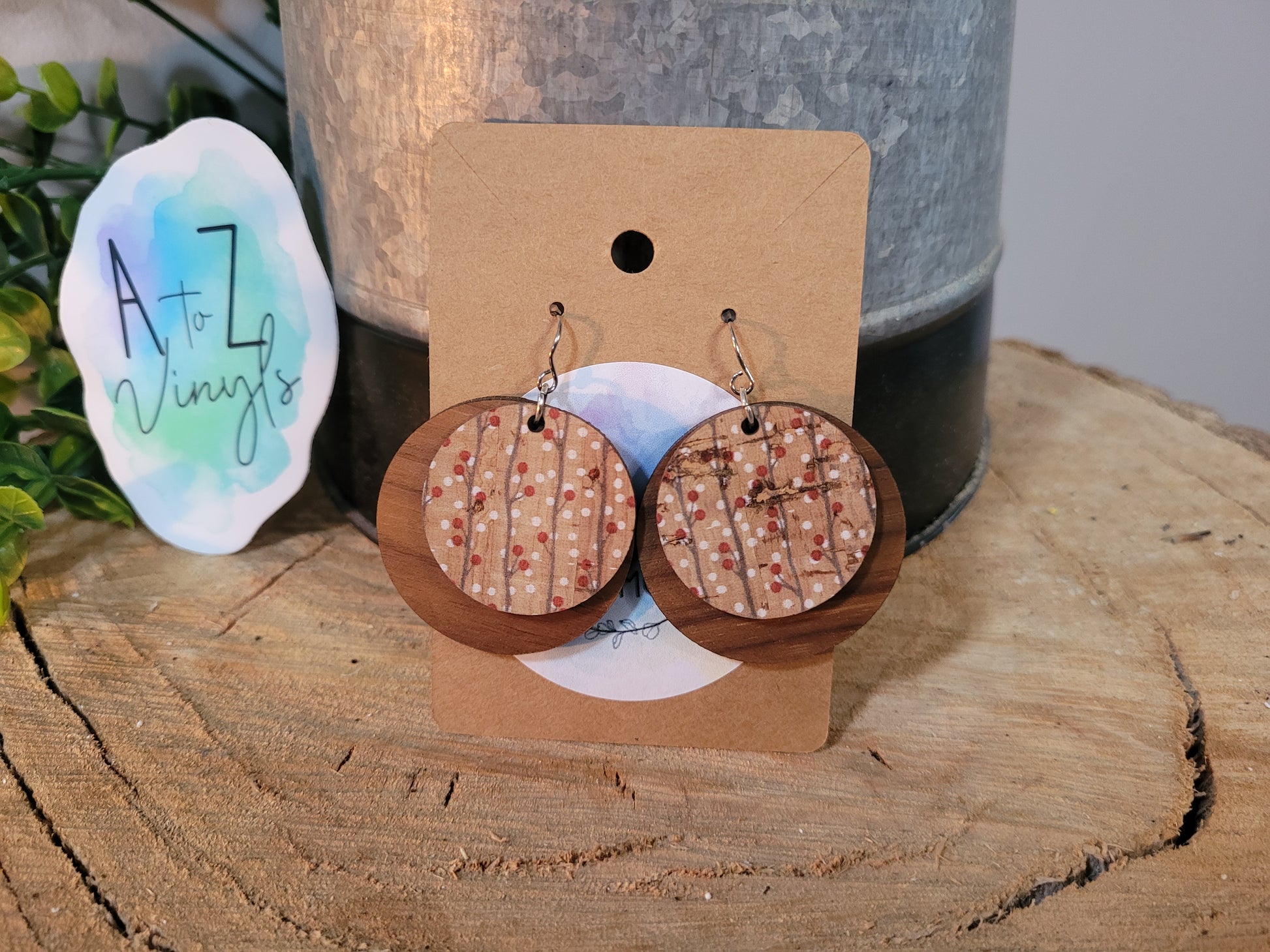2" hang length, walnut wood with cork, with hypoallergenic stainless steel hooks