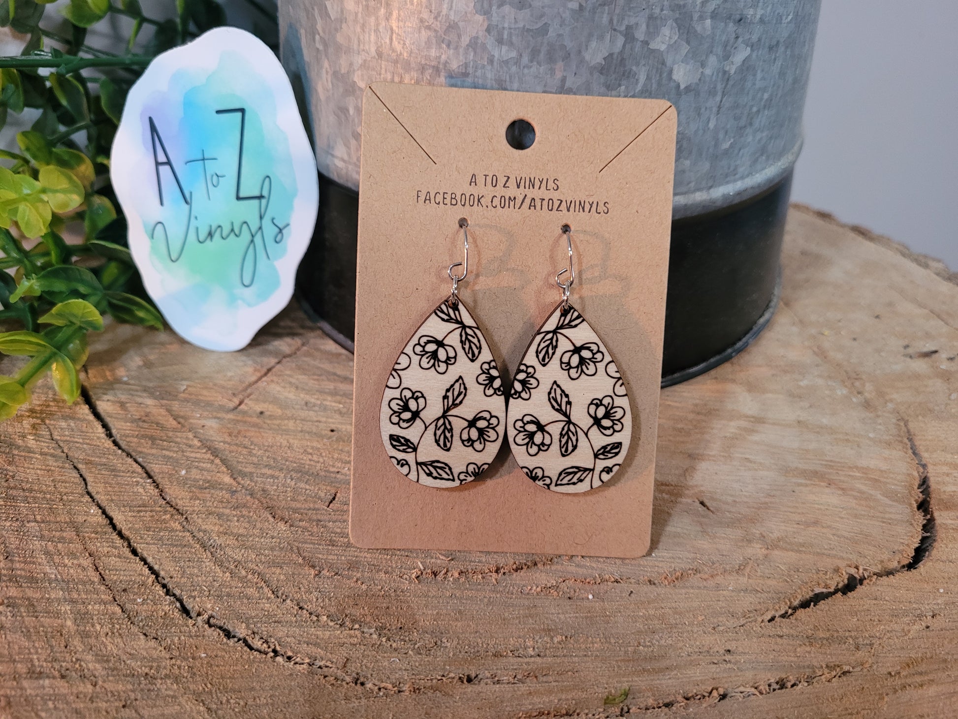 Simple yet elegant flowers on leafy vines add a touch of floral accent to any outfit! Made of laser engraved wood or acrylic, 2.25” drop length with hypoallergenic stainless steel hooks