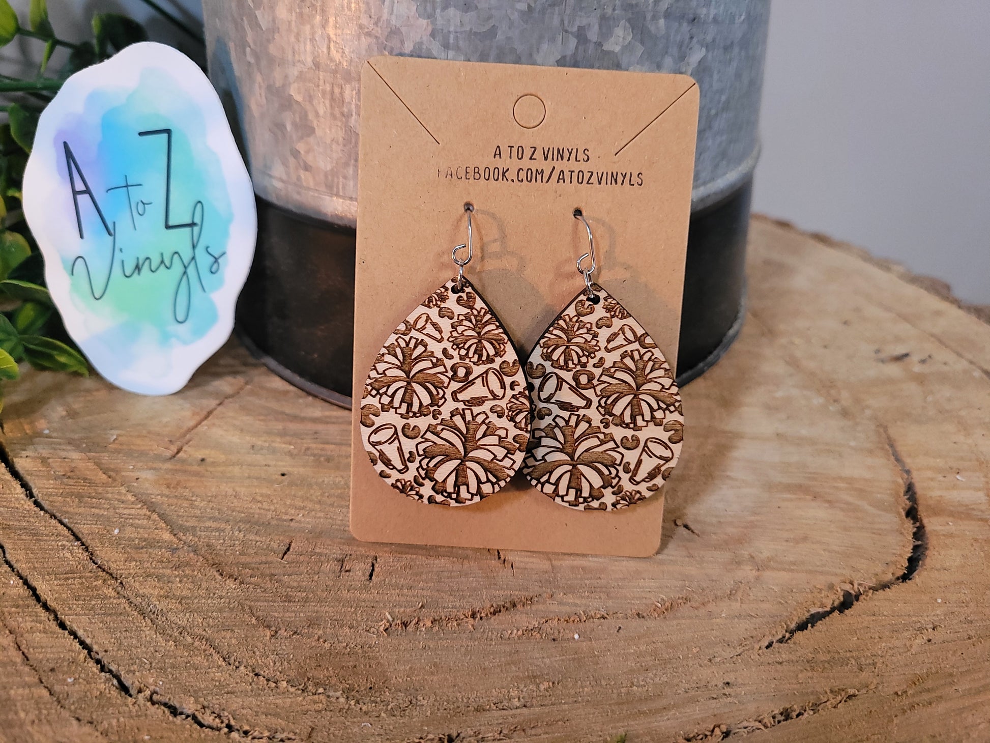 Made of laser engraved maple wood, 2.5” drop length with hypoallergenic stainless steel hooks
