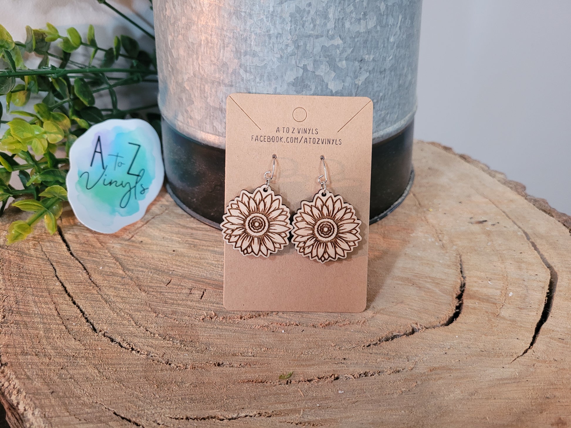 Made of laser engraved maple wood, 1.75" drop length. Hypoallergenic stainless steel hooks